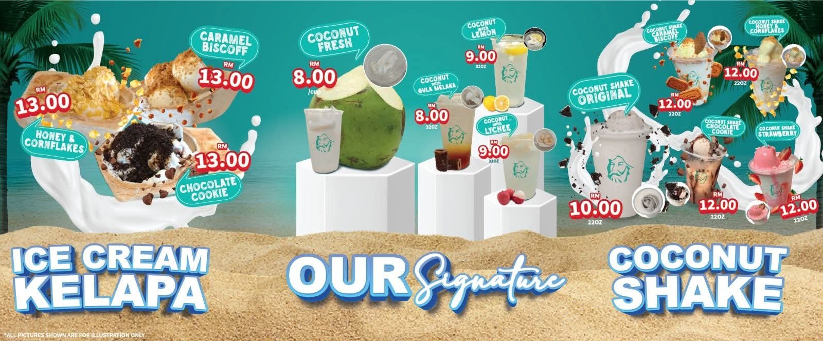 Nikmati pelbagai pilihan minuman kelapa dan makanan yang disediakan dengan penuh cinta